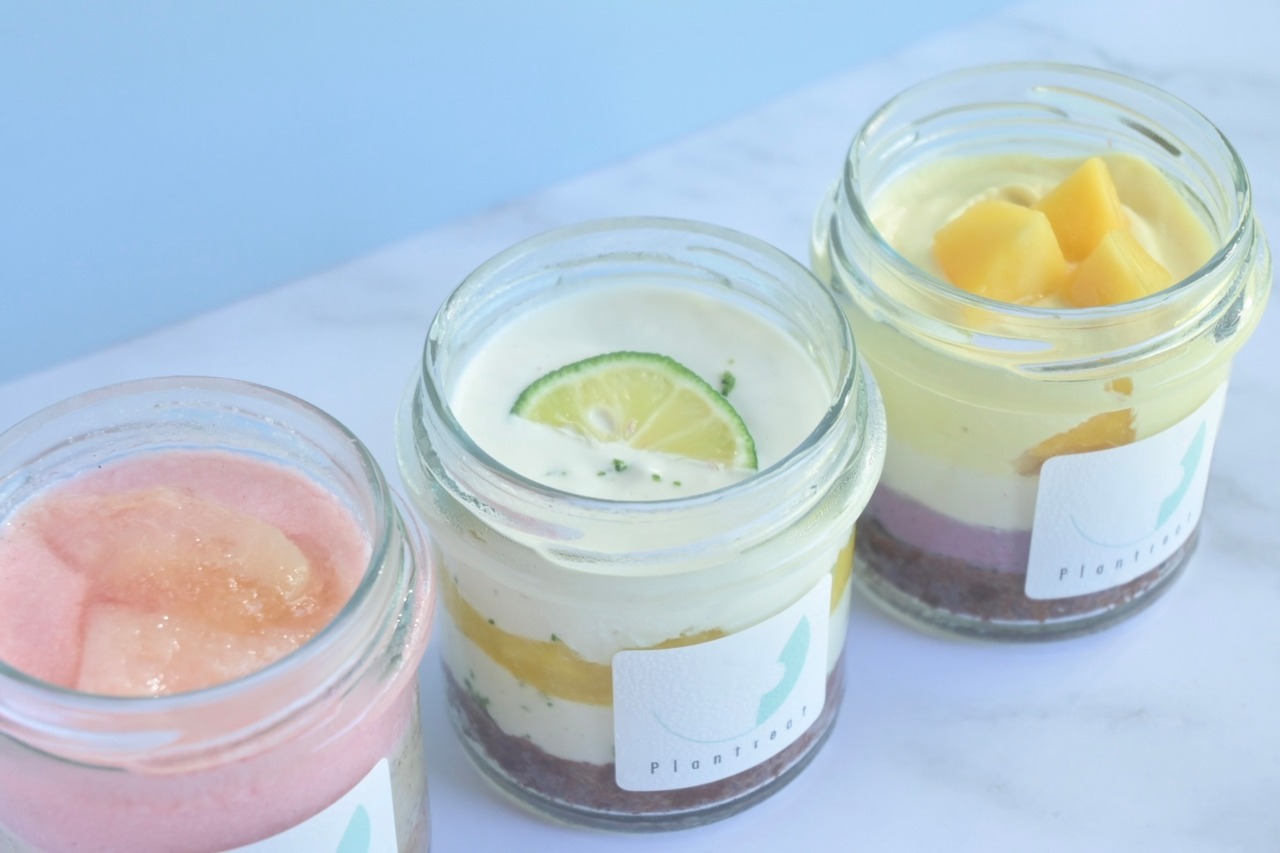 マンゴークリーム(有機マンゴー、有機カシューナッツ、有機ココナッツオイル、有機アガベシロップ、アーモンドミルク、有機レモン汁、天日塩)、ブルーベリーチーズクリーム(有機カシューナッツ、有機ブルーベリー、有機ココナッツオイル、有機アガベシロップ、有機レモン汁、有機バニラエキストラクト、天日塩)、バニラクリーム(有機カシューナッツ、アーモンドミルク、有機メープルシロップ、有機ココナッツオイル、有機バニラエキストラクト、天日塩、有機バニラビーンズ)、チョコレートスポンジ(有機アーモンドパルプ、有機ドライデーツ、有機ドライ杏、有機ココアパウダー、有機バニラエキストラクト、天日塩)